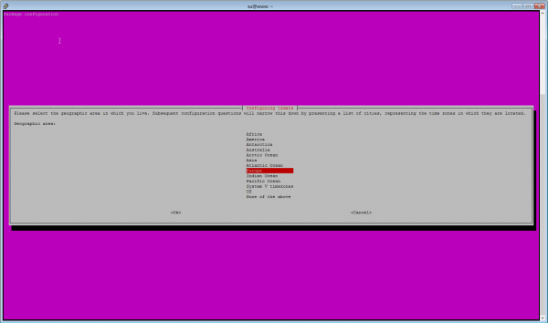 su@www:~$ sudo dpkg-reconfigure tzdata [sudo] password for su: no talloc stackframe at ../source3/param/loadparm.c:4864, leaking memory